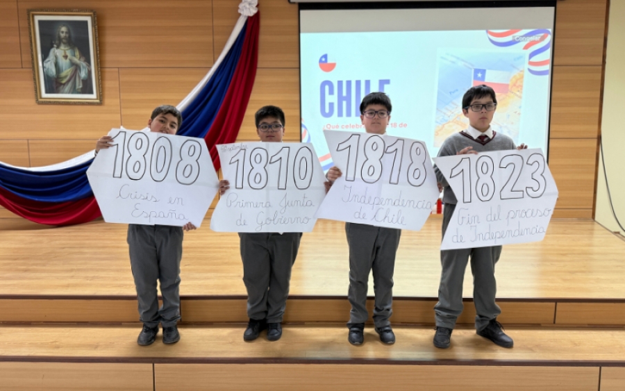En el escenario del Salón Luchelli, los niños nos invitaron a viajar por algunos de los hitos más importantes de la historia de Chile. Con gran emoción, fueron relatando cómo en 1808, la crisis en España tras la invasión napoleónica abrió paso a nuevas ideas de autonomía en América; cómo en 1810, el 18 de septiembre, se formó la Primera Junta Nacional de Gobierno, considerada el inicio de nuestra independencia; cómo en 1818, el 12 de febrero, se proclamó oficialmente la Independencia de Chile; y cómo en 1823 se consolidó la soberanía nacional al culminar el proceso independentista.